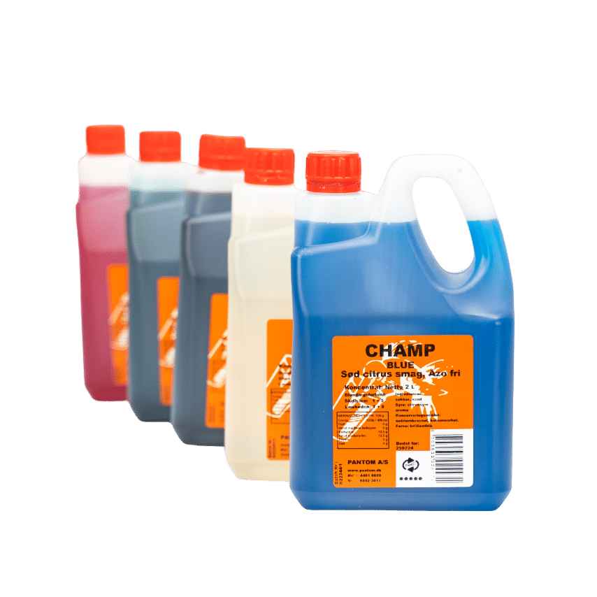 Vi har 5 varianter på lager som kan tilkøbes ved leje af en af vores slushice maskiner
